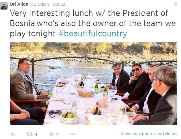 Allon je ranije kupio vlasnički udio u Hapoelu zajedno sa zvijezdom New York Knicksa Amareom Stoudemireom. Zanimljivo je da se Dodik tom prilikom na ručku predstavljao kao predsjednik BiH, jer ga je Allon tako opisao ispod fotografije sa ručka koju je objavio na svome Twitter profilu.