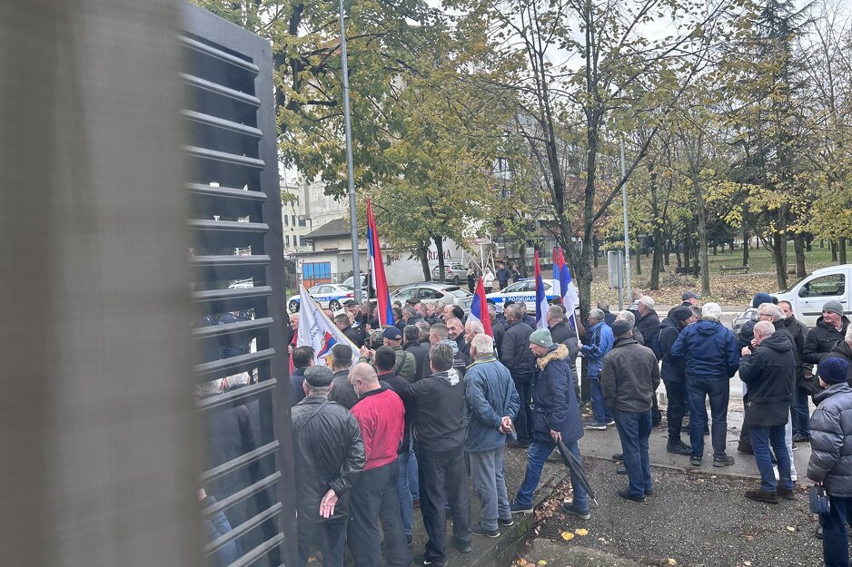 Prije dolaska pred zgradu šetali su kroz grad noseći zastave RS-a, a mogle su se čuti pjesme “Marš na Drinu”, “Veseli se sprski rode” te uzvici “Ovo je Srbija”.