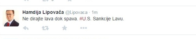 "Ne dirajte lava dok spava. U.S. Sankcije Lavu", napisao je Lipovača.