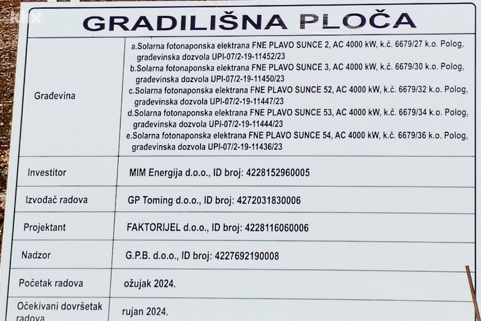 Zanimljivo je da je za investitora navedena kompanija MIM Energija d.o.o koja je također u vlasništvu porodice Mamić, te da je mart označen za za početak radova, a rok završetka septembar ove godine.