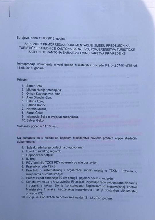 "Njihov prvi navod bio je da smo nekoj firmi uplatili 18 hiljada KM kako bismo ušli u Turističku zajednicu KS. To je apsolutna laž. Uplatili smo 16.000 KM na račun Općine Centar i to je bio jedini način da uđemo u Turističku zajednicu KS, to jeste da izmirimo prijašnji dug. Kazali su kako je iz evidencije nestalo milion i 346 hiljada KM. Prilažem svima na uvid dokument u kojem se vidi kako je 12. juna 2018. godine povjereništvo u kojem je bio i Hubijar izvršilo primopredaju u Turističkoj zajednici KS na kojoj je bio jedan izvod transakcijskog računa sa 1,2 miliona KM te drugi sa 25.000 KM. Narednog dana, 13. juna, prikazano je kako su ostvareni prihodi do tada iznosili 770 hiljada KM i 638 hiljada KM. Ja ne znam šta su oni željeli postići jučerašnjim izvještajem. Da li pokušavaju napraviti pripremu za nestanak tog novca s računa?", istakao je Muzur.