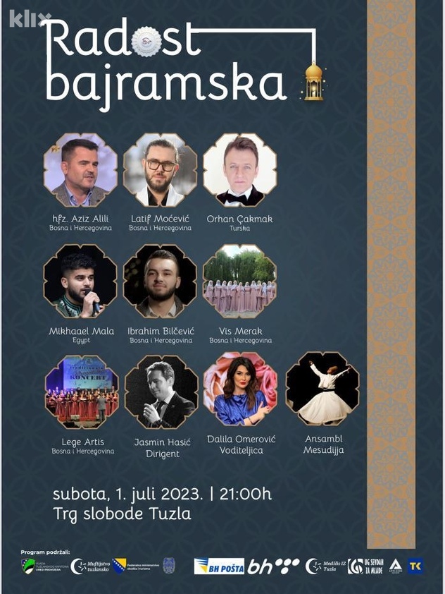 Prestižni izvođači duhovne muzike iz Turske, Egipta i Bosne i Hercegovine u subotu će izvesti najljepše pjesme na Trgu slobode u Tuzli, a u okviru manifestacije "Radost bajramska".
