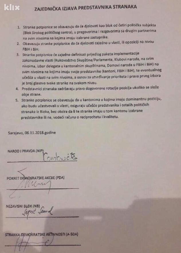 Na nivou FBiH i BiH također će nastupiti zajedno i ukoliko budu u vlasti. Prema zajedničkom opredjeljenju i izjavi, stranka sa najviše glasova na tom nivou će imati pravo prvog izbora. To je na nivou BiH - Nezavisni blok, a na na nivou Federacije BiH Pokret demokratske akcije PDA.