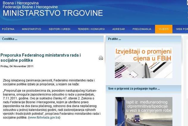 Međutim, Ministarstvo je ranijih godina, primjera radi 2011. godine, ipak davalo preporuku poslodavcima, što se vidi kako na njihovoj, tako i na web stranici Ministarstva trgovine FBiH.