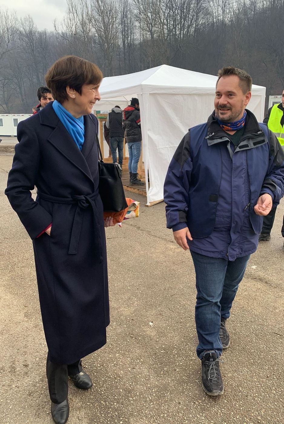 "Drago mi je da je THW u Blažuju na licu mjesta, kako bi pomogao svojom tehničkom ekspertizom i izgradio centar. Time će Njemačka rasteretiti ovdašnje institucije i doprinijeti adekvatnom smještaju za izbjeglice i migrante u BiH“, rekla je ambasadorica Uebber prilikom posjete.