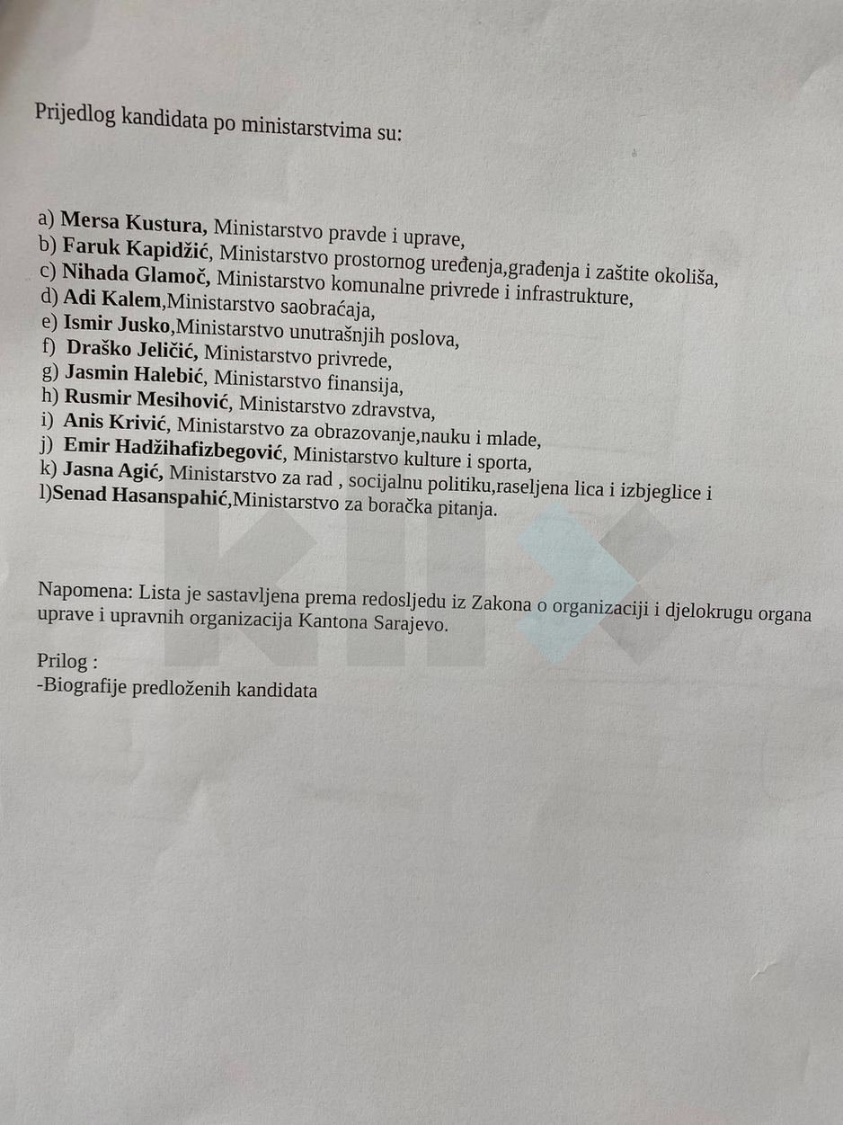S druge strane, imena ostalih kandidata za ministre u Vladi Kantona Sarajevo ostaju ista.