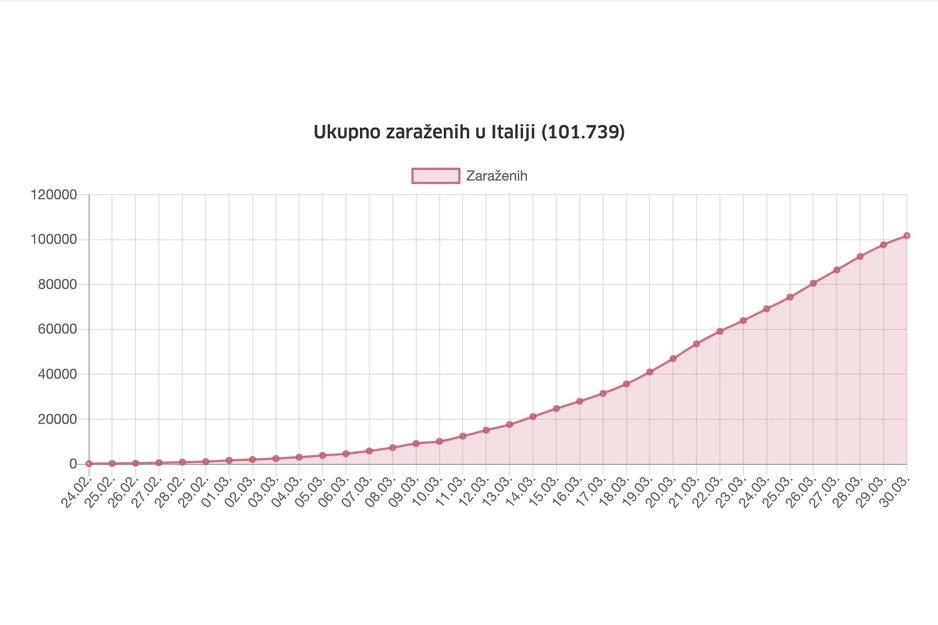 Prema podacima talijanske Civilne zaštite, samo u posljednja 24 sata preminulo je 812 ljudi, a oporavilo se 1.590. Italija je do sada registrovala ukupno 101.739 osoba zaraženih koronavirusom. Od posljedica koronavirusa u ovoj je državi do sada preminulo 11.591 ljudi, a oporavilo ih se 14.620.