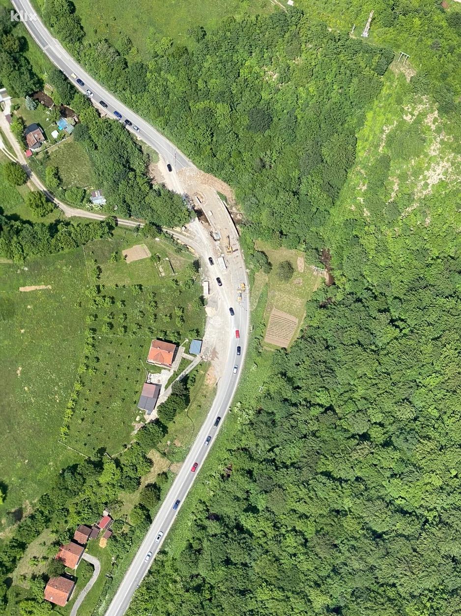 Saobraćaj je regulisan privremenim semaforom, a automobili saobraćaju samo jednom trakom, naizmjenično u oba smjera.