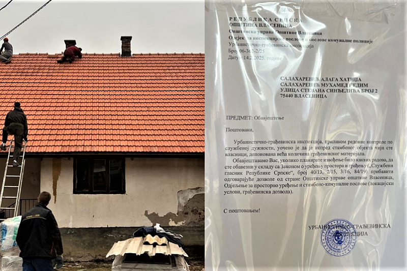 Urbanističko-građevinska inspekcija Opštine Vlasenica na porodičnu kuću Nedima Salaharevića, zalijepila je obavještenje u kojem, između ostalog stoji, kako je uočeno da se ispred stambenog objekta nalazi deponovana veća količina građevinskog materijala, te da je ako planira izvođenje bilo kakvih radova, obavezan pribaviti odgovarajuću dozvolu Opštine Vlasenica, odnosno Odjeljenja za prostorno uređenje i stambeno-komunalne poslove.