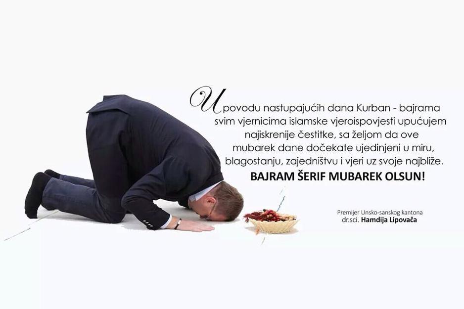 Hamdija Lipovača, premijer Unsko-sanskog kantona i kandidat Socijaldemokratske partije BiH (SDP BiH) za Parlamentarnu skupštinu BiH, uputio je čestitku muslimanima povodom Kurban-bajrama, ali ne bilo kakvu.