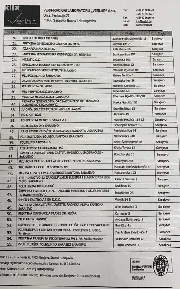 Također, iz Verlaba su naglasili kako zdravstvene ustanove koje se na nalaze na ovom spisku nikada nisu izvršile zakonsku verifikaciju medicinske opreme.
