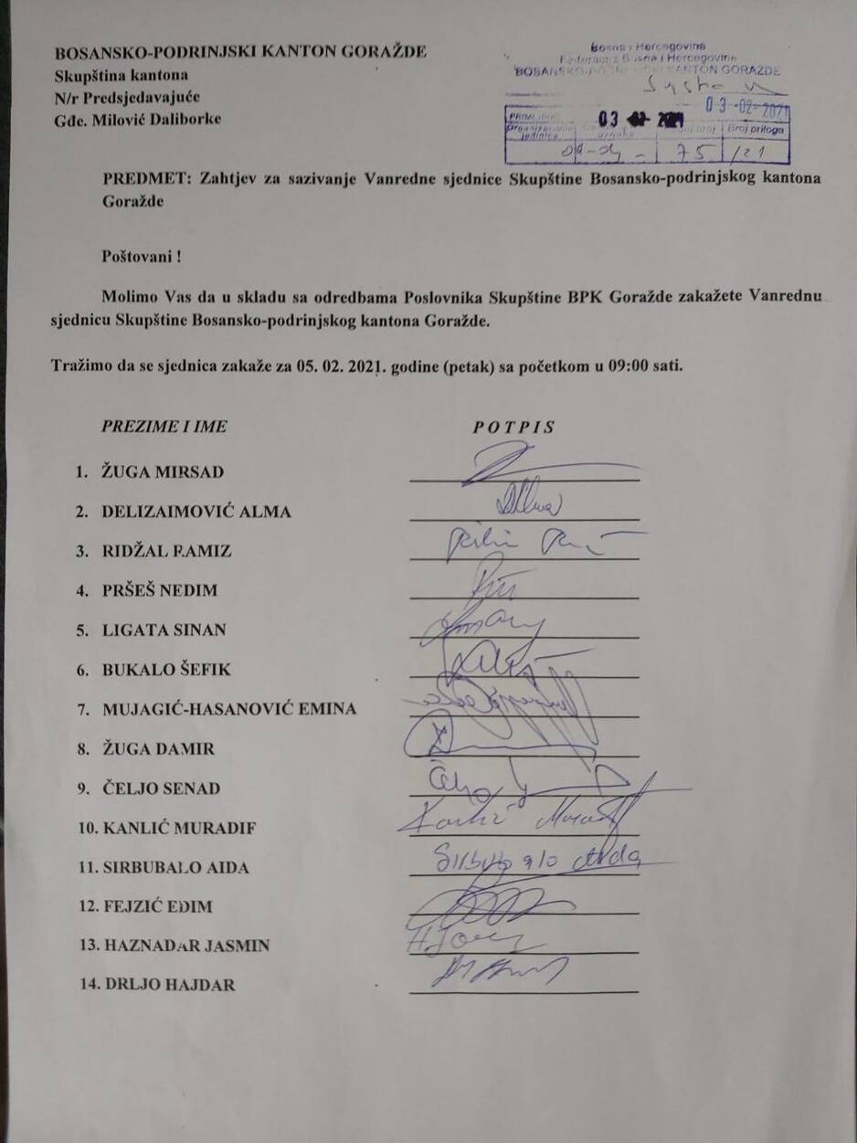 Poslanici traže i zakazivanje vanredne sjednice Skupštine BPK Goražde u petak u 9 sati ,a na ovoj bi sjednici trebalo doći i do promjene ne samo dopredsjedavajuće Velić već i predsjedavajuće Skupštine BPK Goražde Daliborke Milović (LS) koja je na ovoj poziciji tek nepuna dva mjeseca, a čiji izbor također nije prošao mirno, o čemu smo pisali i ranije.