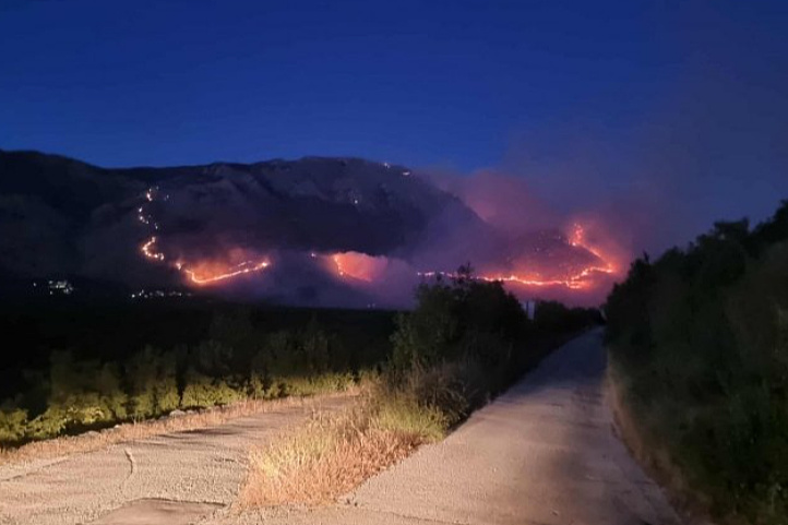Veliki požari rasplamsali su se noćas u Hercegovini, na području Popovog Polja, sela Tulje i Mrkonjići kod Trebinja, a nakon što su vatrogasci i mještani od kuća odbili vatru u naseljima Hrupjela i Podglivlju, novi požar prijeti kućama u Popovom Polju.