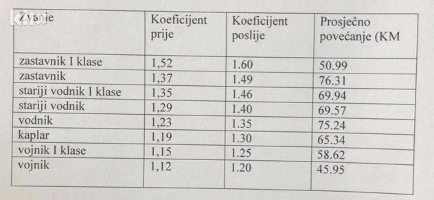 Plaće su povećane samo vojnicima i podoficirima. Zakon stupa na snagu osmog dana od dana objavljivanja u Službenom glasniku BiH, što znači da će stupiti na snagu 17. juna 2020. godine.