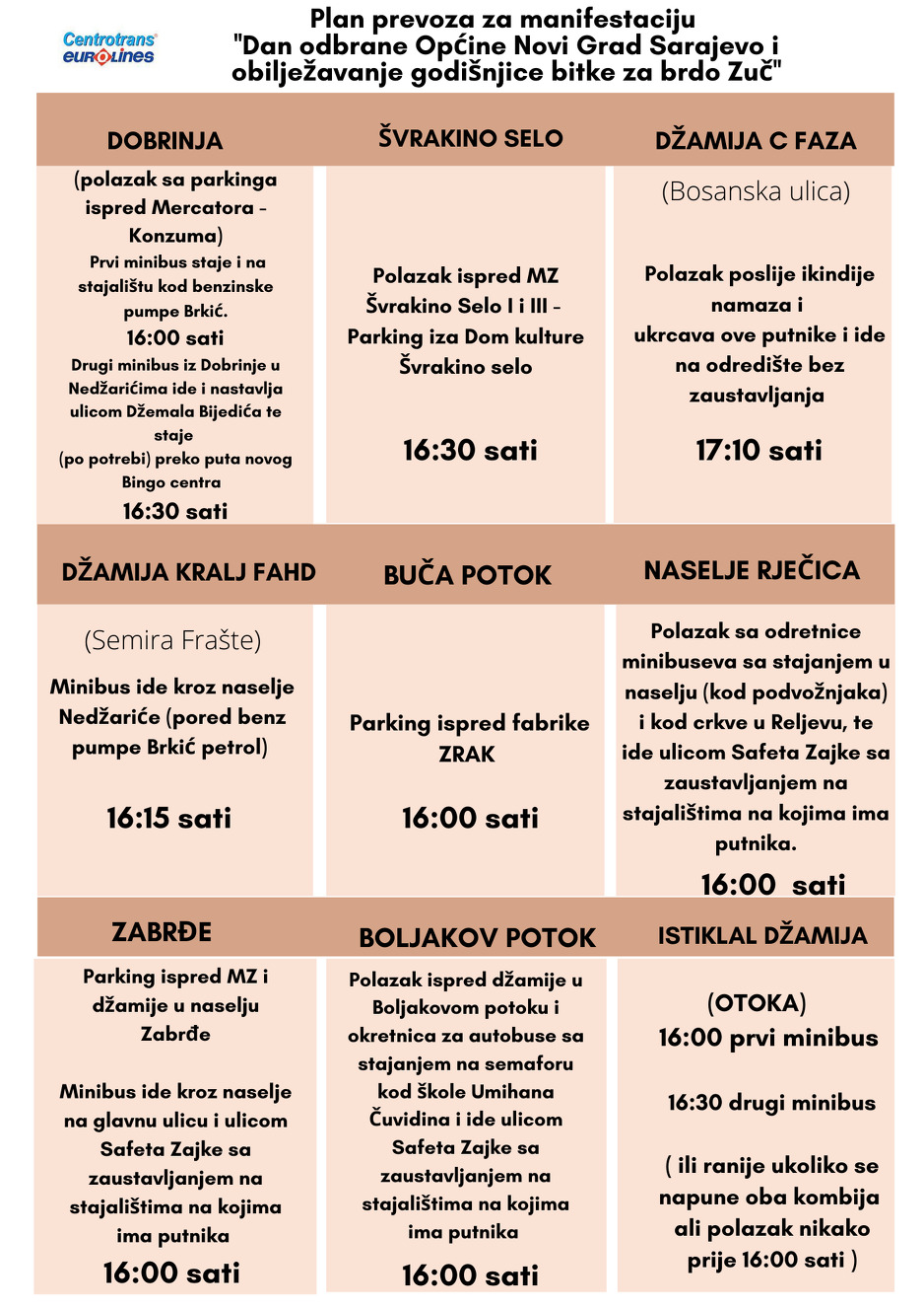 Također će biti uručeno i 30 zahvalnica Općine Novi Grad Sarajevo za zasluge u odbrani Općine Novi Grad Sarajevo i Bosne i Hercegovine u odbrambeno – oslobodilačkom ratu 1992-1995. godine, kao i organizaciji života i rada građana u ratnim uvjetima. Za sve građane koji žele prisustvovati obilježavanju ovog značajnog datuma za odbranu Općine, grada Sarajeva i države Bosne i Hercegovine, Općina Novi Grad je osigurala prijevoz do Golog Brda i nazad.
