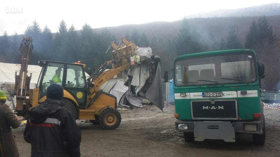Jutros su na Vučjak stigli bager i kamioni koji će ukloniti improvizirane šatore, a zatim preorati zemljište.