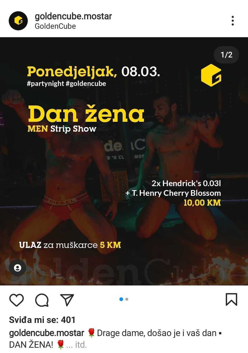 Na stranici ovog mostarskog kluba jučer je u toku dana objavljen poziv za posebnu zabavu koju organizuju povodom 8. marta, Dana žena.