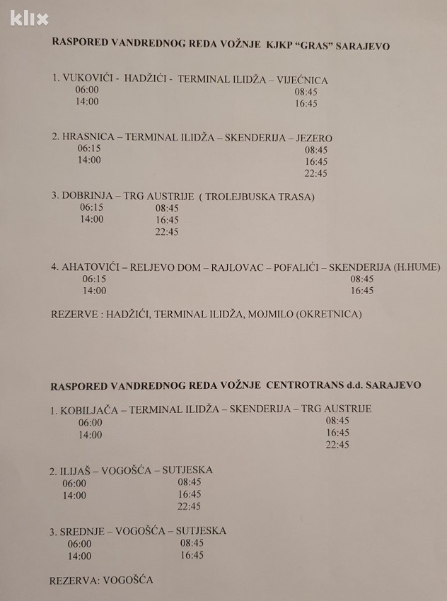 Ministar saobraćaja Kantona Sarajevo Adi Kalem kazao je za Klix.ba da sa predstavnicima GRAS-a i Centrotransa usaglasili linije autobuskog prijevoza za radnike u sektoru zdravstva i sigurnosti.