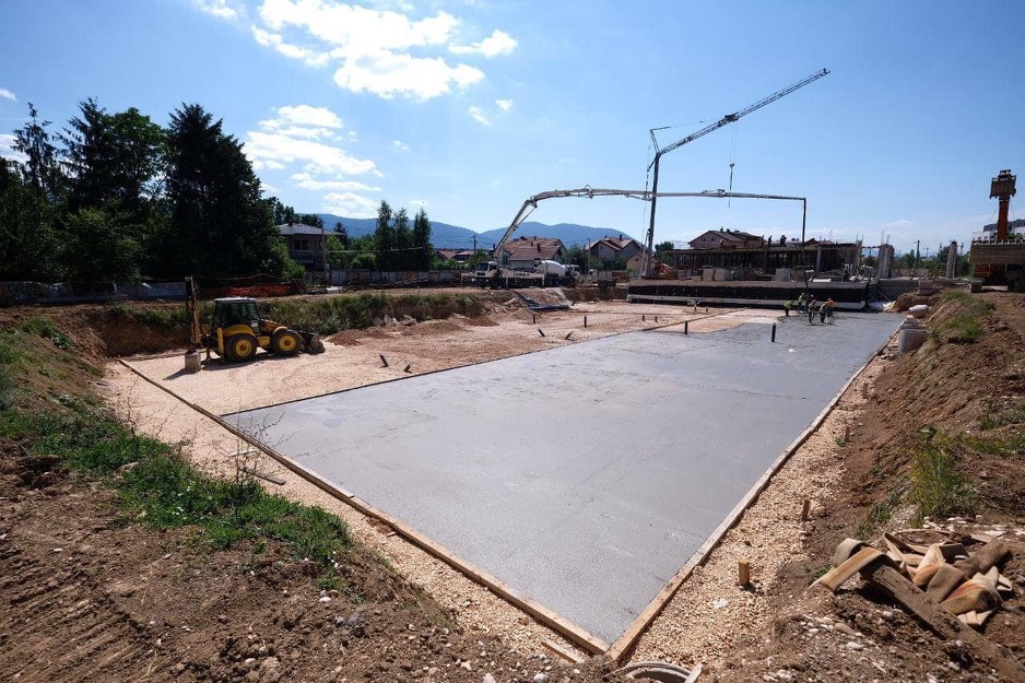Sportsko-rekreacioni centar sa bazenima na Dobrinji, čija je izgradnja počela prije nešto više od mjesec počeo je poprimati konkretan oblik. Danas se naime izlijevala temeljna ploča bazena.
