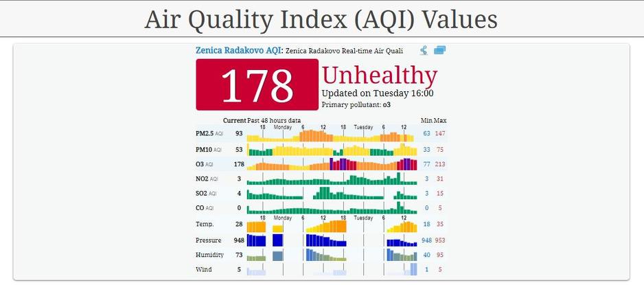 U Zenici je taj indeks nešto niži i iznosi 155, a koncentracija čestica PM10 je 57.