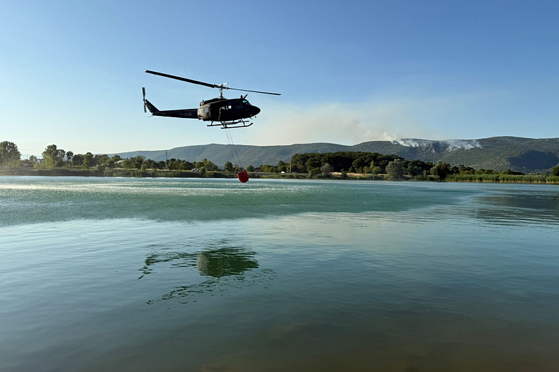 U pomoć vatrogascima je stigao i helikopter Oružanih snaga Bosne i Hercegovine koji uzima vodu iz jezera Krenica.