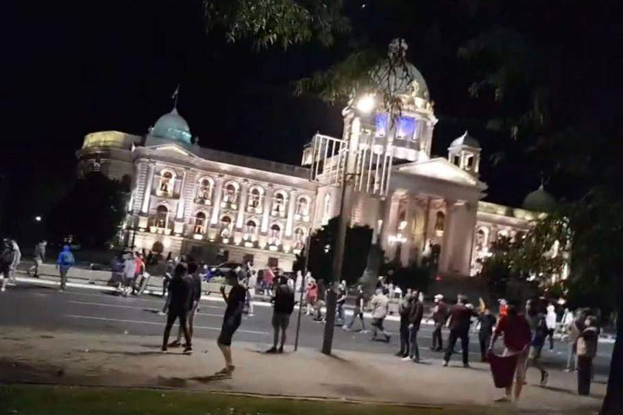 Na ulicama su zapaljeni i kontejneri, a demonstracije su se raširile po ulicama i parkovima oko zgrade Skupštine, a neki demonstranti su krenuli i ka zgradi Radio-televizije Srbije.