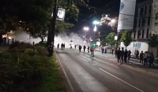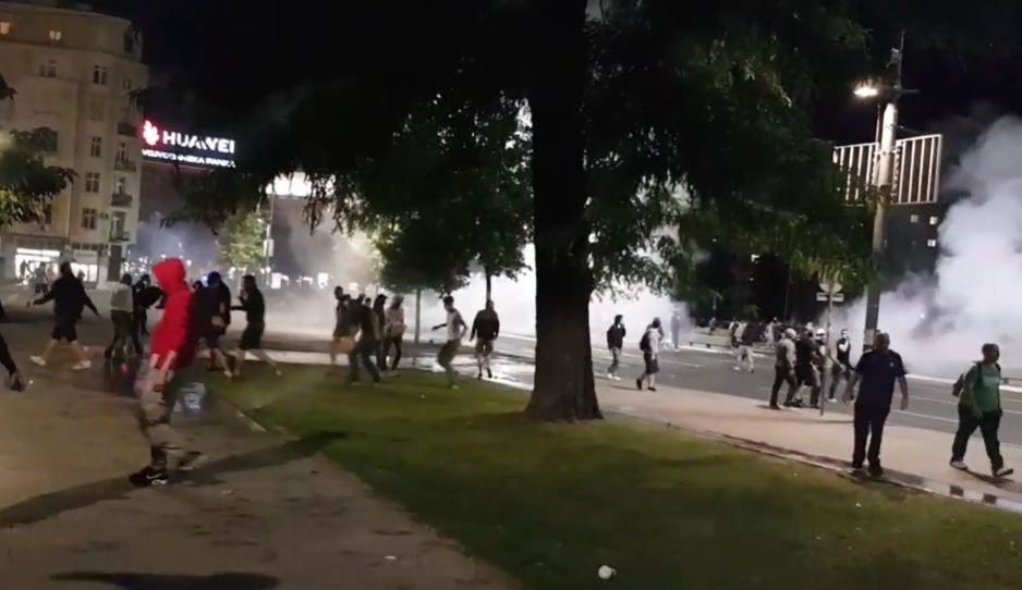 Demonstranti su suzavcima razbijeni na više lokacija i u manjim su grupama, ali ne odustaju uzvikujući parole protiv Aleksandra Vučića. Policija je nastavila sa konstantnim bacanjem suzavaca, a demonstranti s gađanjem kamenicama i vraćanjem suzavaca među žandarmeriju.