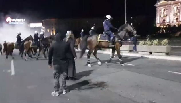 Direktor Policije Srbije Vladimir Rebić je kazao za RTS da je više policajaca povrijeđeno u neredima ispred Skupštine Srbije. Na beogradskim ulicama su i pripadnici policije na konjima koji intervenišu.