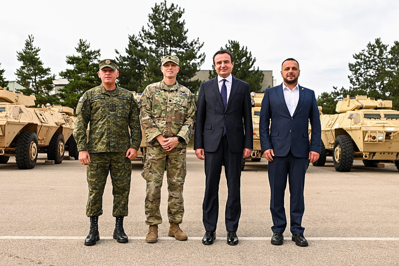 "Danas mi je bila čast što smo zajedno s ministrom odbrane Ejupom Maćedoncijem, komandantom KBS-a Baškimom Jašarijem i vojnim atašeom u Ambasadi Sjedinjenih Američkih Država na Kosovu, potpukovnikom Jonatanom Shawom, prisustvovali isporuci oklopnih vozila nabavljenih u SAD-u za KBS", objavio je Kurti na Fejsbuku.