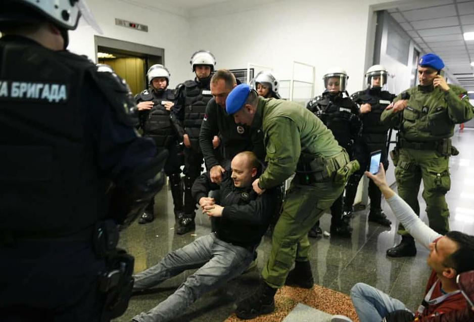 21:47 - Policija je počela izvoditi jednog po jednog demonstranta iz zgrade RTS-a.