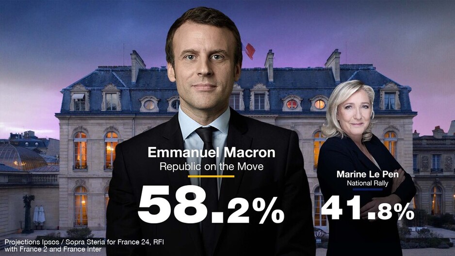 Prema prvim rezultatima, Macron je danas osvojio 58,2 posto glasova, a Le Pen 41,8 posto glasova.
