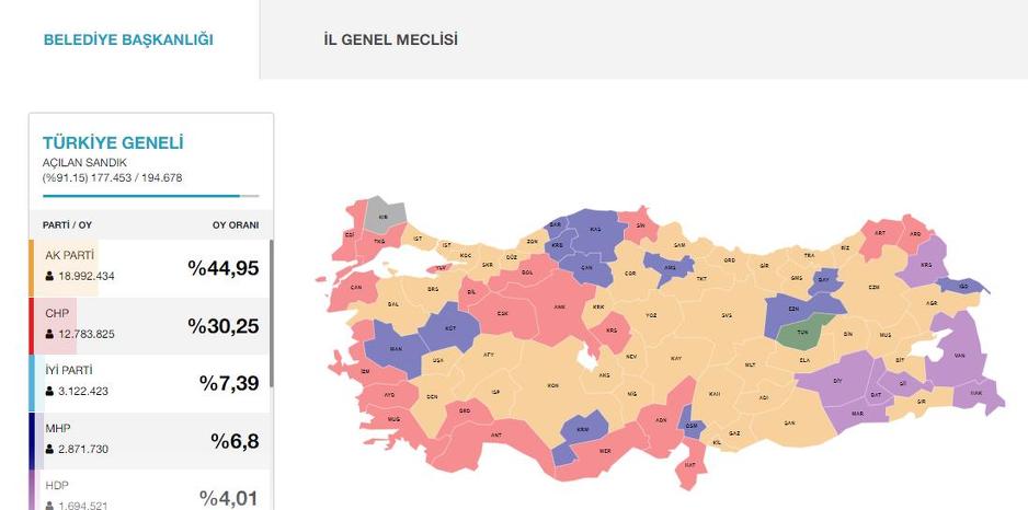 S druge strane, Erdogan je osvojio vlast u više od 40 mjesta, dok je CHP osvojila vlast u 20 mjesta. Sveukupno, Erdoganova koalicija vodi sa 51,74 posto, a opozicija ima 37,64 posto glasova.