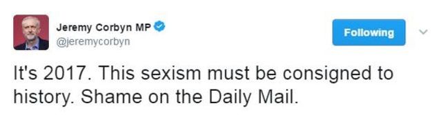 Laburista Jeremy Corbyn poručio je da je 2017. godina i da seksizam mora postati stvar prošlosti dodavši: "Neka je Daily Mail sramota".
