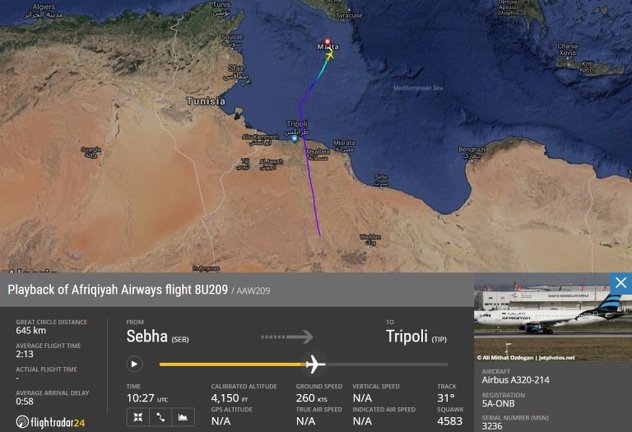 Avion kompanije Afriqiyah Airway je letio iz libijskog grada Sebha u Tripoli, ali je završio na 500 kilometara udaljenoj Malti.