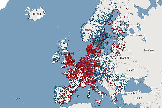Na spomenutoj internetskoj stranici je objavljena i mapa zagađenja "trajnim hemikalijama" na Starom kontinentu. Kako je objašnjeno, crvenom su označena vodna područja za koja se zna da su kontaminirana PFAS-om. Nijanse crvene su određene shodno tome koliko je zagađenje (od 10 do 100 nanograma po litru, od 100 do 1.000 nanograma po litru, od 1.000 do 10.000 nanograma po litru te više od 10.000 nanograma po litru).