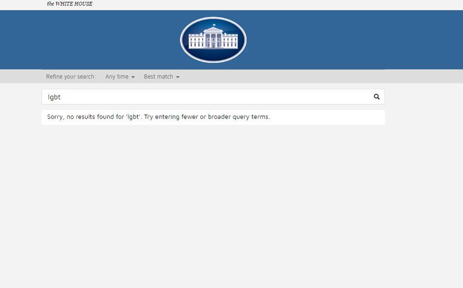 Nekoliko sati nakon što je Trump preuzeo funkciju predsjednika, stranica whitehouse.gov/lgbt više ne postoji. Umjesto nje postavljena je "tranzicijska" stranica na kojoj vas pozivaju da se prijavite kako biste na svoj email dobijali novosti o predsjedniku Trumpu.