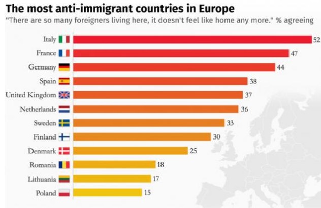 S ovom izjavom se slaže 47 posto Francuza, 44 posto Njemaca i 37 posto Britanaca. Na listi 12 zemalja, Velika Britanija je zauzela peto mjesto, iako je više onih koji se nisu složili s ovom izjavom. Skoro 70 posto ljudi u Italiji koji imaju populističke stavove složilo se s ovom tvrdnjom.