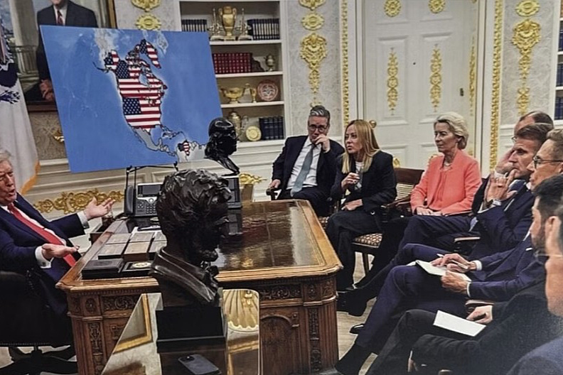 Trump je također podijelio sliku generiranu pomoću AI na kojoj razgovara s evropskim liderima u Bijeloj kući s američkom zastavom iznad Grenlanda.