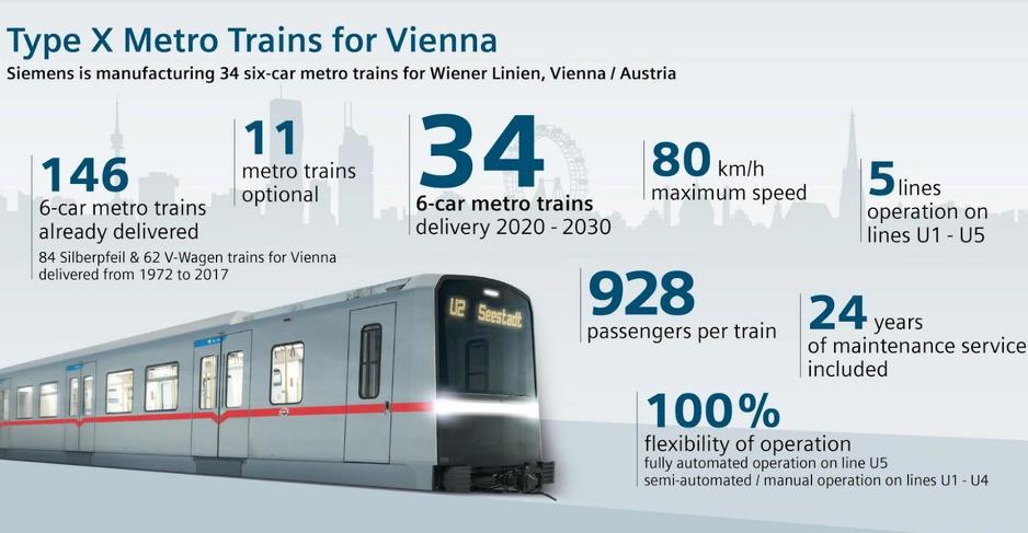 Narudžba u vrijednosti od 550 miliona eura kod proizvođača Siemens, koji u svojoj ispostavi u Beču upošljava 1.300 radnika, uključuje i ugovor o održavanju vozova u trajanju od 24 godine. Albrecht Neumann, šef odjela za željeznička vozila u Siemensu, je ovo vozilo nazvao najsavremenijim metroom na svijetu, a za njega su kako je naglasio, najvažnija udobnost i visoka sigurnost putnika, jer jedino tako mogu spoznati prednosti javnog prevoza.