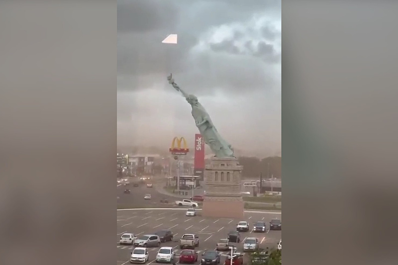 Replika Kipa slobode nalazila se na parkingu trgovačkog centra lanca Havan, u blizini ugostiteljskog objekta. Snimci objavljeni na društvenim mrežama prikazuju kako se gornji dio statue pod naletima vjetra počinje naginjati, nakon čega se konstrukcija urušava i raspada. Glava statue potpuno je uništena pri padu.